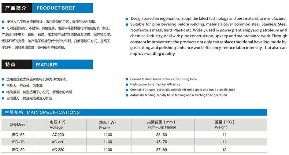 ISC外夹式电动管子坡口机